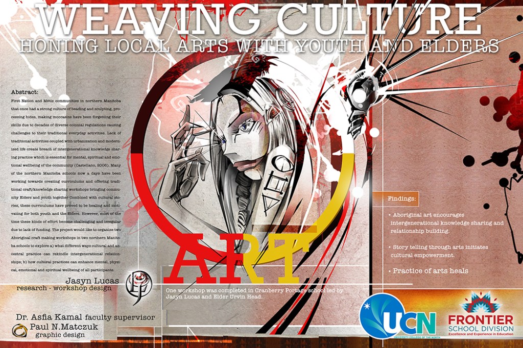 Year 3 – 2021 – 2022 -This project was done in collaboration with Jasyn Lucas, under the guidance of academic warrior Dr. Asfia Kamal. He did the research, I designed the poster. We have collaborated on several projects in the past, and am certain we will do so again in the future. The project is centred around the healing powers and endless possibilities of creativity. WEAVING CULTURE – Honing Local Arts With Youth and Elders. Thank you Jasyn Lucas (RESPECT) and Dr.Kamal (RESPECT). – Academic Poster.